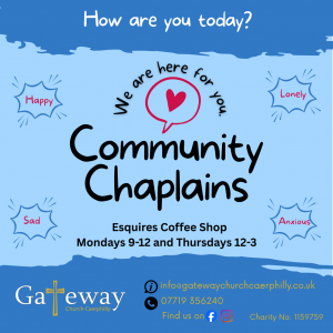 We meet most Sundays (drinks from 4.30pm, service starting at 5pm) at St. Martins School, Caerphilly. (From St Martins Road, turn up Rectory Close, through the metal school gates, and our entrance is on the left, with parking on right.) You are very welcome to join us!